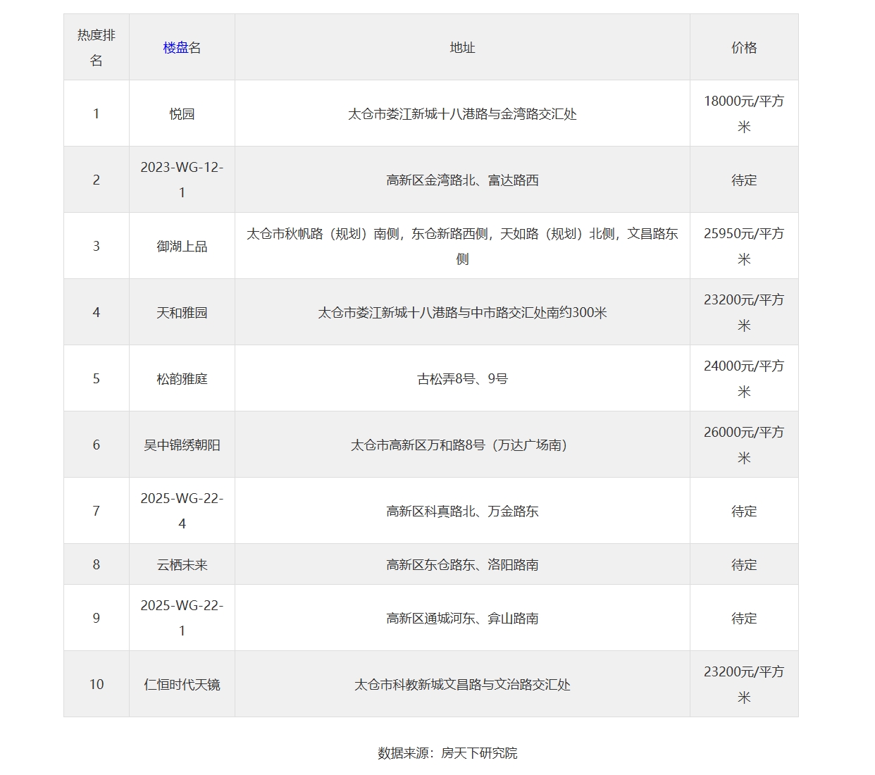 9月第5周太仓人气楼盘榜出炉,这些小区备受